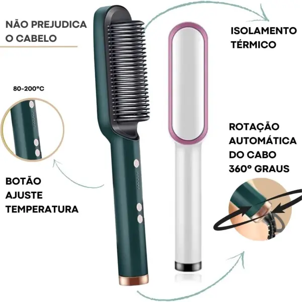 Esqueça chapinha, escova comum e horas no salão. Com a Escova Alisadora Inteligente 3 em 1, você alisa, modela e dá brilho aos fios em apenas alguns minutos, direto do conforto da sua casa!